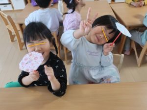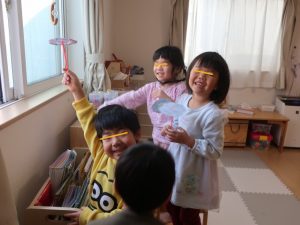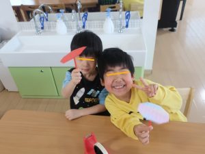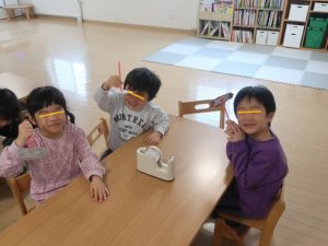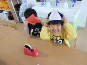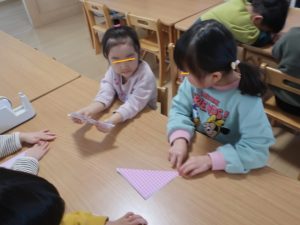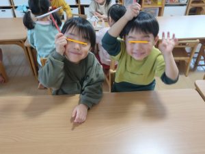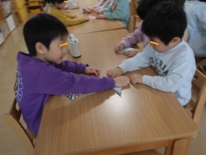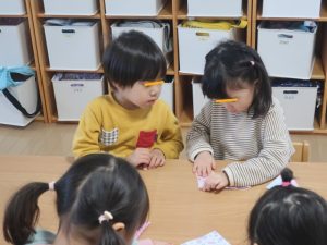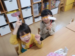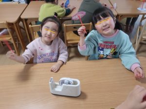 今日は空飛ぶコマを作りましたよ🛸すみれさんとこすもすさんがペアになって教えてあげながら一緒に作っていました(*^-^*)