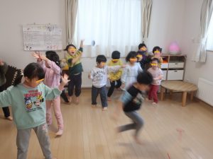 もも・すずらん組さんは、お部屋で遊んでから園庭で遊びましたよ(*^-^*)