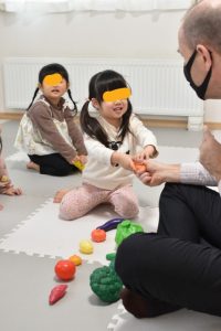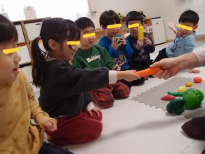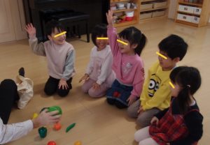 サシャ先生の英語の発音をよく聞き、野菜や身体のパーツについて教えてもらいましたよ♪