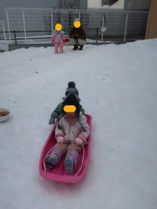 今日は各クラスお部屋でのんびりと過ごした後に、英語教室と雪遊びを楽しみました。