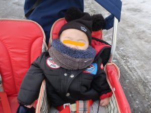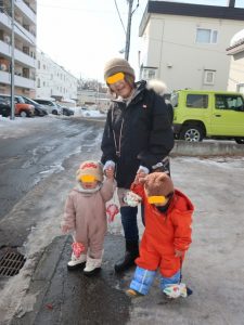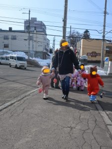 歩きながらも周りの人にニコニコ笑顔で手を振ったり「アンパンマンバス見れるかな?」「おててギューしよ!」とおしゃべりも弾んでいました(^-^)