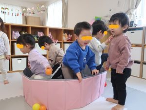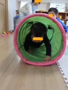 園に戻ってからは、ボールプールやトンネル、テントの中に入って遊びました♪