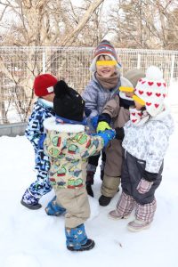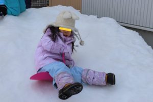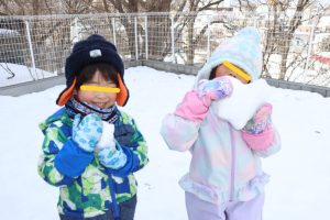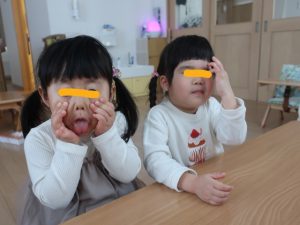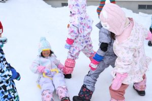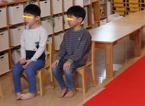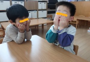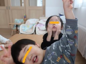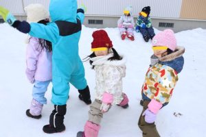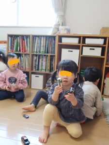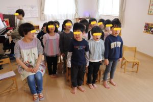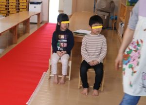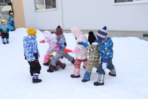 すみれ・こすもす・ひまわり組さんは、卒園式の練習の後園庭で遊びました。赤い絨毯を敷いたお部屋にピッと背筋が伸びたような子ども達。一生懸命練習に取り組んでいます。
