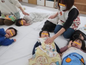 小さなお友だちは、たくさん遊びお布団に入ってからもニコニコが止まらない子ども達でした(*^-^*)
