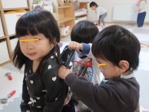 お医者さん役と患者さん役に分かれて本格的に遊んでいましたよ💉