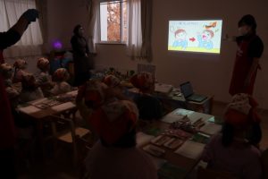 今日はひまわり・こすもす組さんが日本ハムの「食育出前授業」に参加しました。