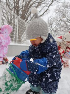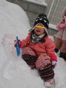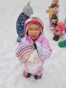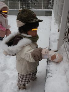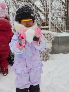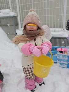 すずらん・ちゅうりっぷ組さんは園庭で遊びましたよ✨バケツに入れてケーキを作ったり、雪玉を集めたりと満喫しました🎵