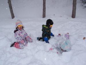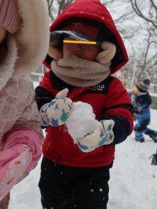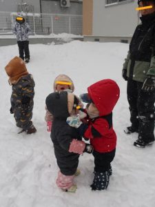 広場で追いかけっこをしたり、雪に身体を埋めあったりと全身雪だらけで楽しんでいましたよ✨